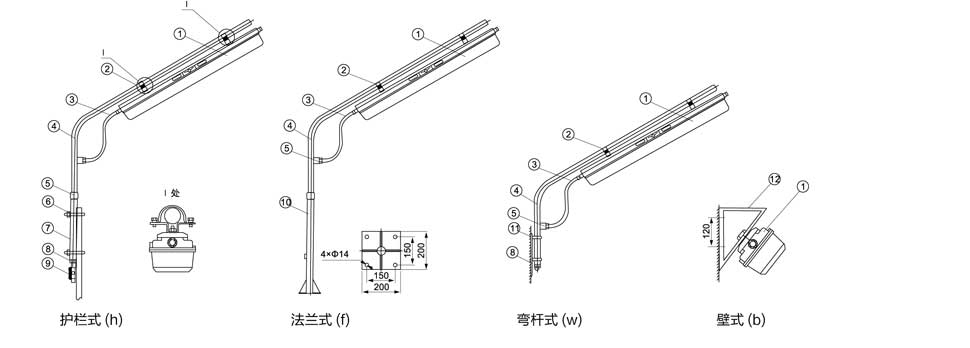 ○ 外殼采用SMC 模壓成型,強度高、耐衝性、耐腐蝕,燈罩采用