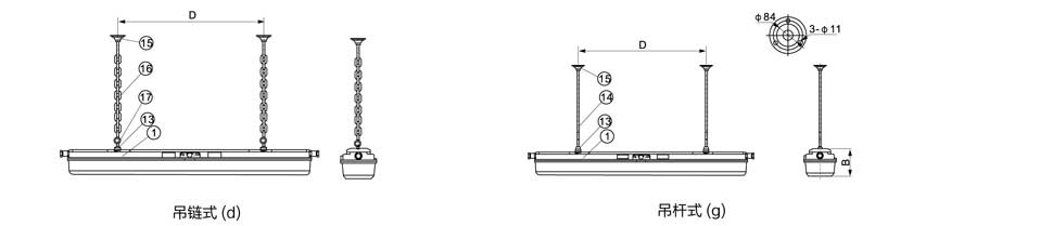 ○ 內裝鎮流器為我公司特製的防爆鎮流器, 其功率因數